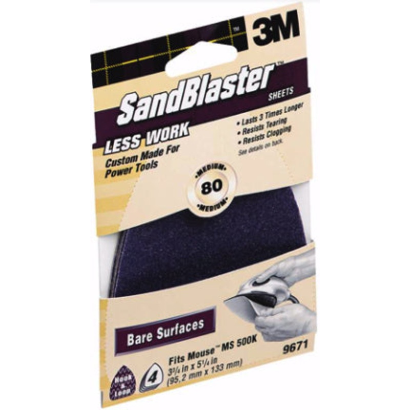 Sander sheets for use with Black and Decker MS500K Mouse sander. For surface smoothing on bare surfaces. Size 3-3/4" x 5-1/4". Cubitron mineral lasts 3 times longer and resists clogging. Medium. Package of 4. 80 grit.