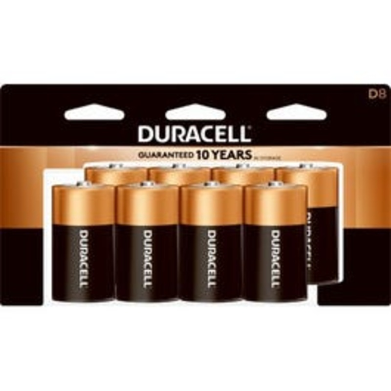 Duracell 8 Pack "D" 1.5 Volt Alkaline Duracell Battery. New Duracell "Duralock" technology allows the batteries to stay fresh in the package for 10 years.