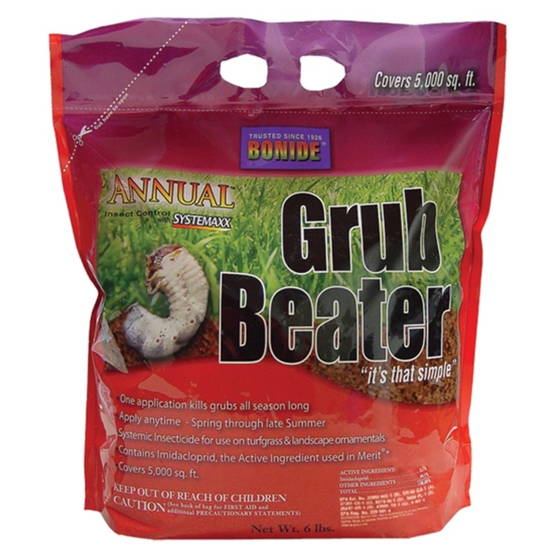 Bonide Annual Grub Beater kills grubs all season long with only one application needed per year. Apply anytime, spring through late summer. For use on turfgrass and landscape ornamentals. Covers 5,000 sq ft.