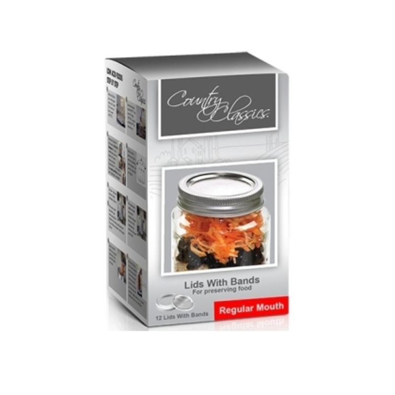 Includes 12 Regular Mouth Lids and BandsUniversal Fit Lids and Bands