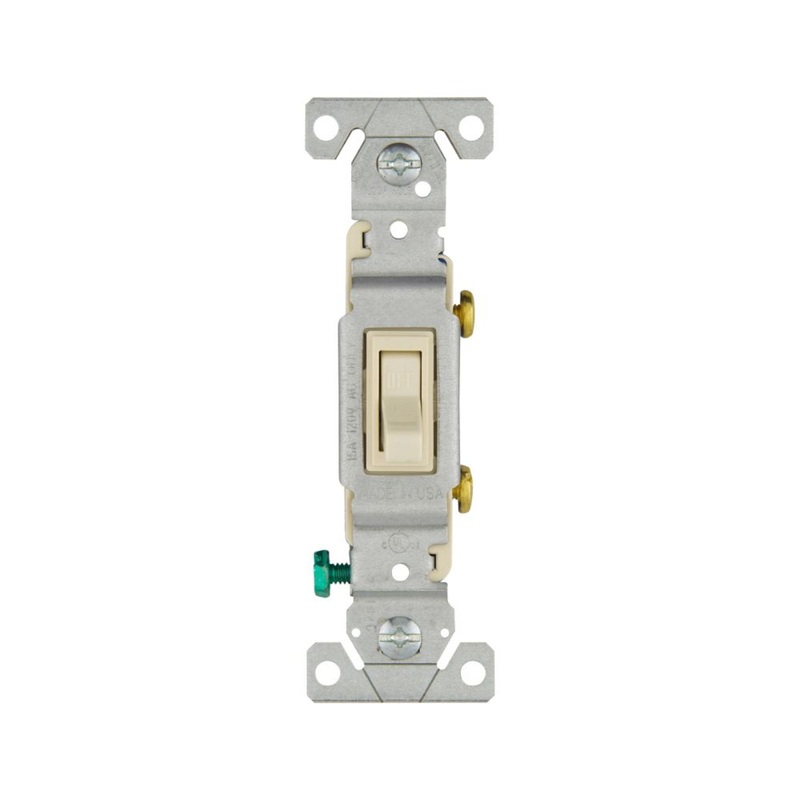 Eaton toggle switch, #14-10 AWG, 15A, Flush, 120V, Side and push, Screw, Light almond, Load type: Motor Control, Fan, LED, Incandescent, ELV, MLV, CFL, Flourescent, Halogen, Single-Pole, Single-Pole, Polycarbonate