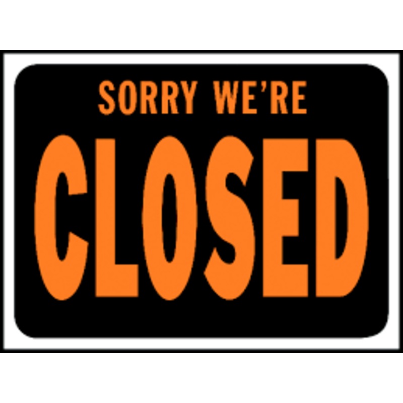 Hy-Ko, 9 x 12, Plastic, Sorry We’re Closed, Hy-Glo Orange & Black