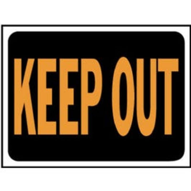 9″ x 12″, plastic, keep out sign, hy-glo orange & black.