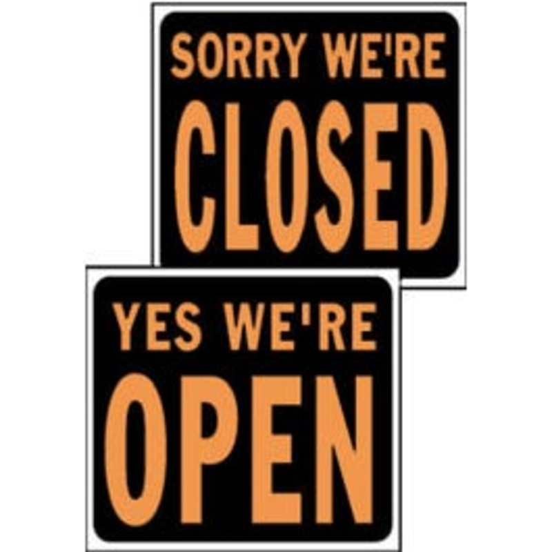 15" x 19", Plastic Open/Closed Reversible Sign, Hy-Glo Orange & Black, Weather Resistant.